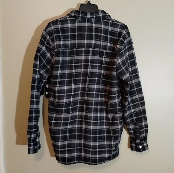 Condition: New with TagsSize: SmallStyle: Relaxed Fit Style#: TJ210Color: Charcoal/Black Plaid (B1X)Material:100% Polyester High Pile Fleece (Lining)100% Cotton Yarn Dye Flannel (Shell)- Water Repellent Fleece-Lined Flannel Shirt Jacket; the best of both worlds. - It looks and wears like a shirt but keeps you warm like a coat. - Made of yarn dye flannel in 100% cotton, which is treated with Durable Water Repellent (DWR) technology.- Durable Water Repellent (DWR) technology makes water bead up and roll off fabric- Great for working outside. - Ensure your hands stay warm with fleece hand-warmer pockets- Store your essential work gear and even your phone in the deep front pockets. - Perfect layering option while on the job.- Red back neck tape detailing- Front chest pocketsOpen to bundling!Bundle & save!!!All Items come from a clean, smoke-free home.All items cross-posted, so get them before they’re gone!(Zip Bag J-1)