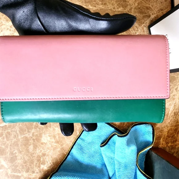Elegant Gucci wallet in pink and green. Stylish and versatile.- Comes with its original box- certificates.