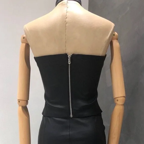 Leather top, size 38. Made in Italy.Stylish and rare item.😍😍😍Comes with a leather choker around the neck. Suitable for bust sizes up to 90 cm. My back circumference is 75 cm, my chest is 3 sizes.I wear a DD bust (95 cm).To my great regret, the top is small for me, I need a size larger. No brand. New, never been worn! 💎💎💎