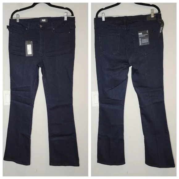 Paige High Rise Manhattan Bootcut Jeans inMasquerade Darkwash Size 32 Petite aka 14P.see photos for approximate measurements to ensure fit. New with tags"This universally flattering silhouette is designed with a high-rise and a slim bootcut from the knee down. Cut from our TRANSCEND VINTAGE denim in a chic, elevated dark wash, this style has the look of authentic vintage denim but is incredibly comfortable with plenty of stretch and recovery.BootcutFitted through the hip and thigh, opening to a bootcut from the knee downHigh RiseSits at the natural waistTranscend VintageThis fabric offers a vintage look combined with luxurious comfort and super stretch technology"54% RAYON , 23% COTTON, 22% POLYESTER , 1% SPANDEXshort petite 14S 14 Short 14P 14 Petite 32S 32P 32 Petite 32 Short slim bootcut stretch denim cowgirl country concert Rodeo western1lb 6oz9227