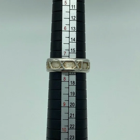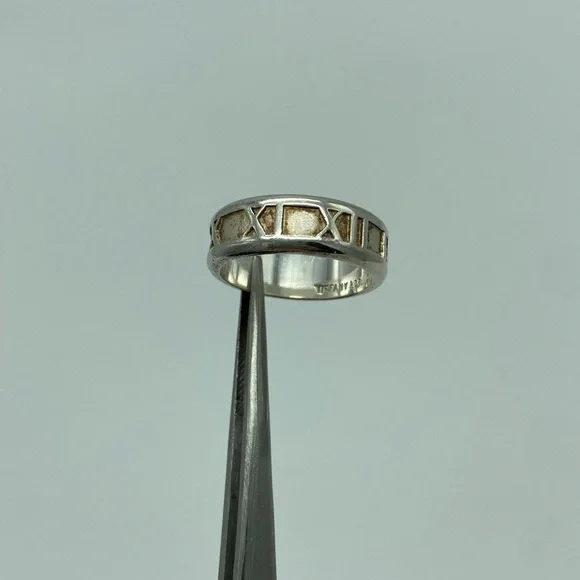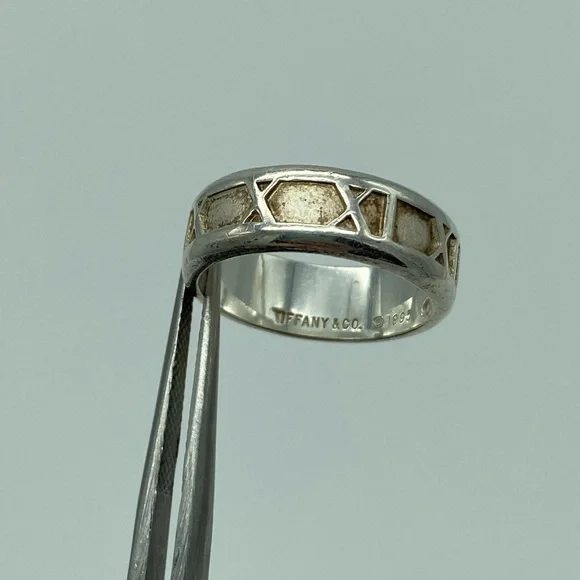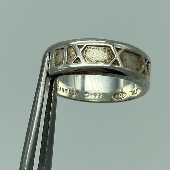 Made in Italy Has been safely in storage for years - Visible tarnishing - Has not been polished or cleaned - Comes as is Listing photos display weight in oz / g / oztApprox. ring size: 7.5 - See on ring sizer in photosComes with:T&Co. cinch pouchT&Co. box T&Co. bag Size of box/bag can be found in photos, as well as wear to cinch pouch / bag