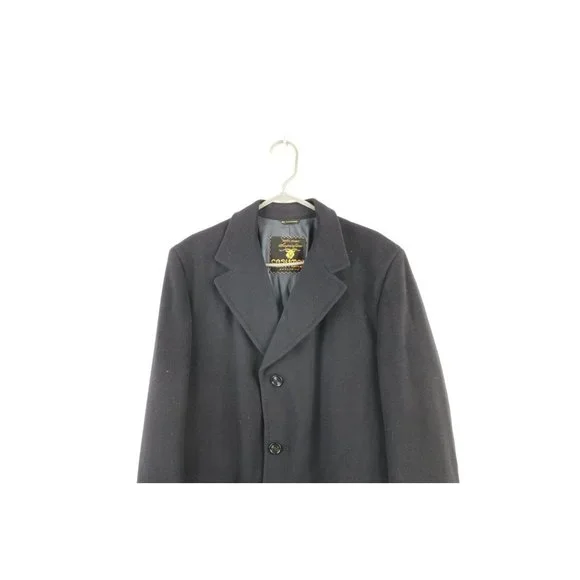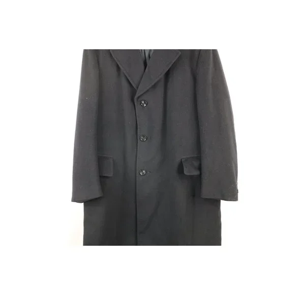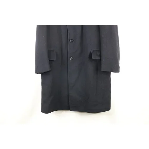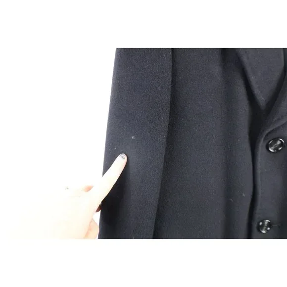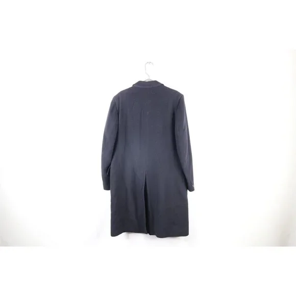 Vintage 50s Union Made Mens 44L Alpacuna Cashmere 3 Button Topcoat Jacket USAMens JacketHas blemishes on baack bototm and right armMens size 44L (no size tag; see measurements)Measurements are:23 inches underarm to underarm41.5 inches top to bottomBlueCashmereCheck out my other items in my store!J44
