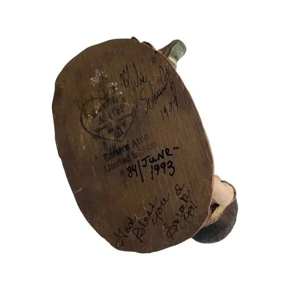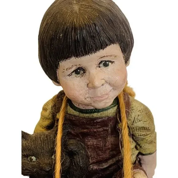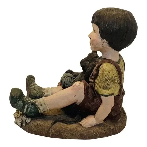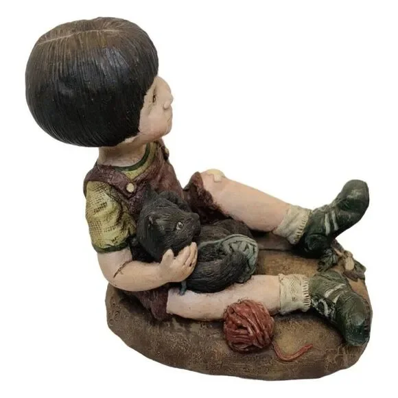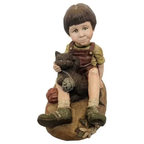 Vintage Sarah’s Attic Stretch Girl Sitting With Black Cat And Ball Yarn FigurineSuper cute Limited Edition Little brown hair girl named Stretch sitting on the ground with her black kitty cat and yarn balls .Rare #84 out of 3000 made signed by both the artist and her husband . Sarah’s Attic was a popular line of figurines and Snowonders snow globes in the 1980’s- 1990s, and the phenomenon actually began on the dining room table of the Schultz home in Chesaning, MI. In 1983, Sarah Schultz was managing the gift department in her husband's pharmacy The Schultz Country Pharmacy , where she was also selling her own hand-made creations Sarah';s Attic Collectibles each with Limited Edition designs .Each figurine was handmade and hand painted. My items are Authentic , and were directly purchased from the pharmacy . I have signed/autographed pieces from Sarah herself , as well as her original work samples, and low numbered Limited Edition pieces . Check out my whole collection for sale in my shop. Sarah’s AtticGreat condition see photos Limited Edition / Stretch#84 out of 3000 made 3 5/8in HX2.5in W.X 3.5in HWeight: 8oz1990Autographed by artist & her husband Ships from a pet & smoke free facility MADE IN USA
